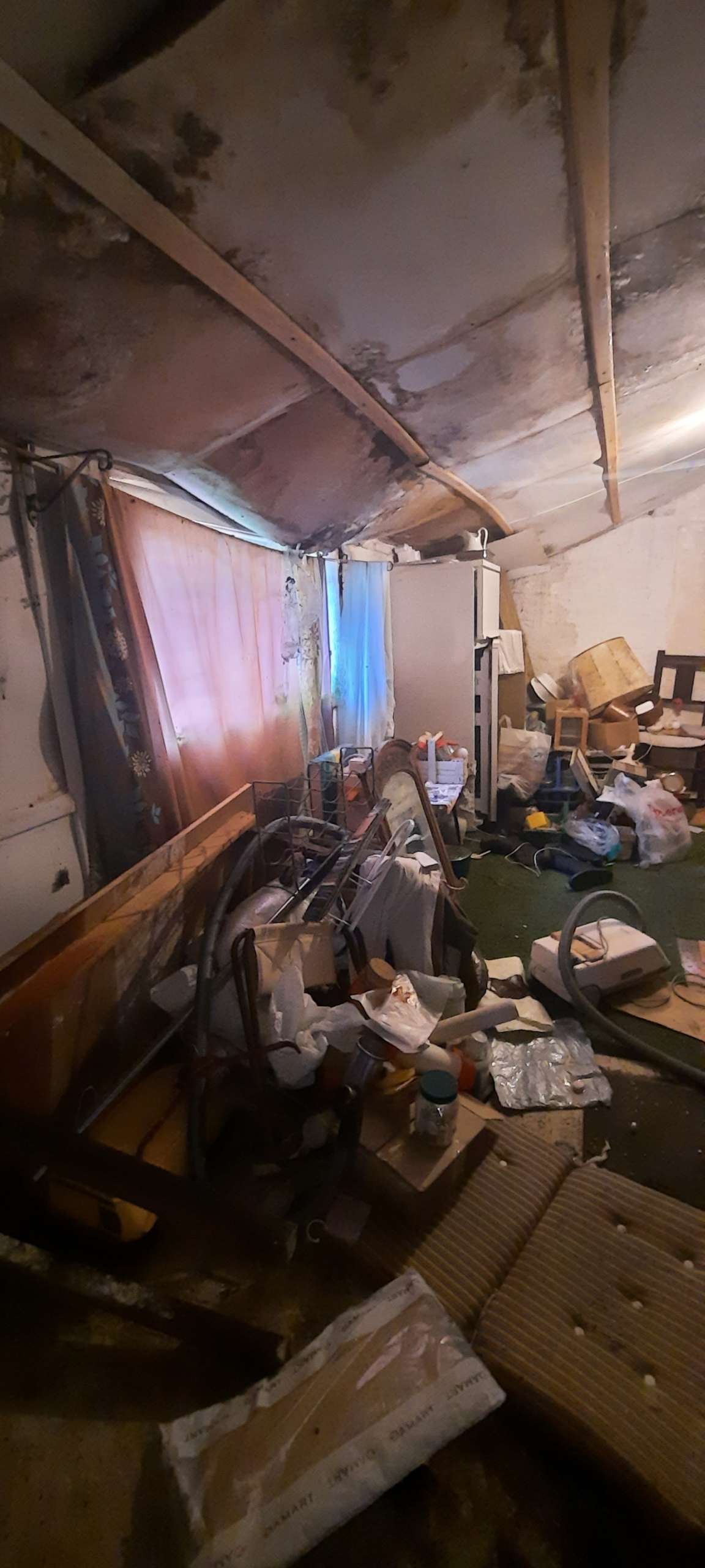 Pour ce bien insalubre (humide et sale) nous avons utilisé des masques à cartouches afin de nous mettre en sécurité.